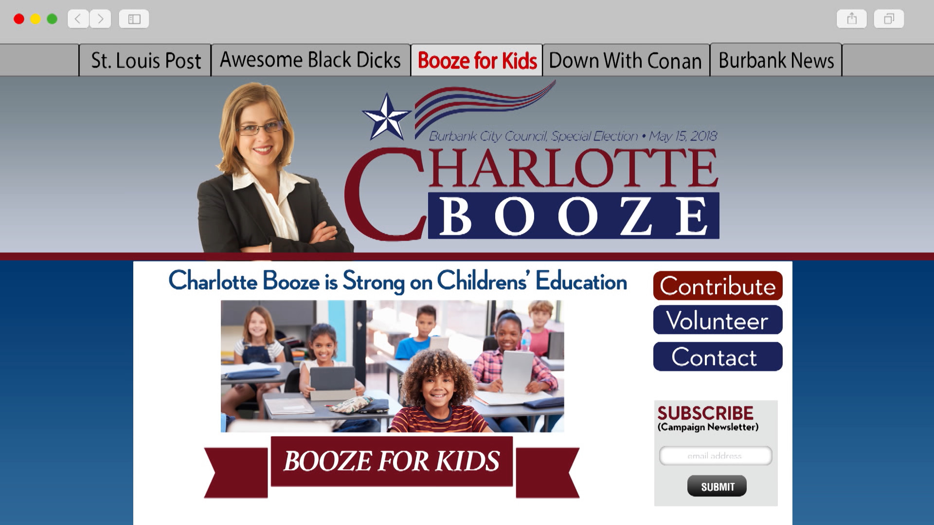 Wednesday, April 25, 2018Andy Richter isn’t an advocate for underage drinking, he’s just reading up on Burbank Councilwoman Charlotte Booze’s pre-education platform.