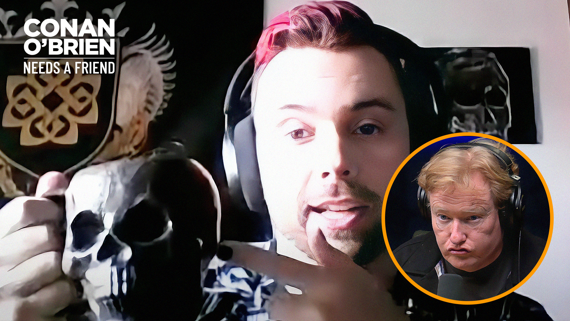 Conan’s phlebotomist fan, Anthony, is in a metal band, and Conan asks him to perform some of his scream vocals - much to the chagrin of the gang’s Zoom filters.