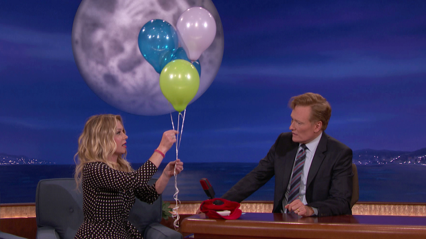 Christina Applegate Brings Birthday Gifts For Conan