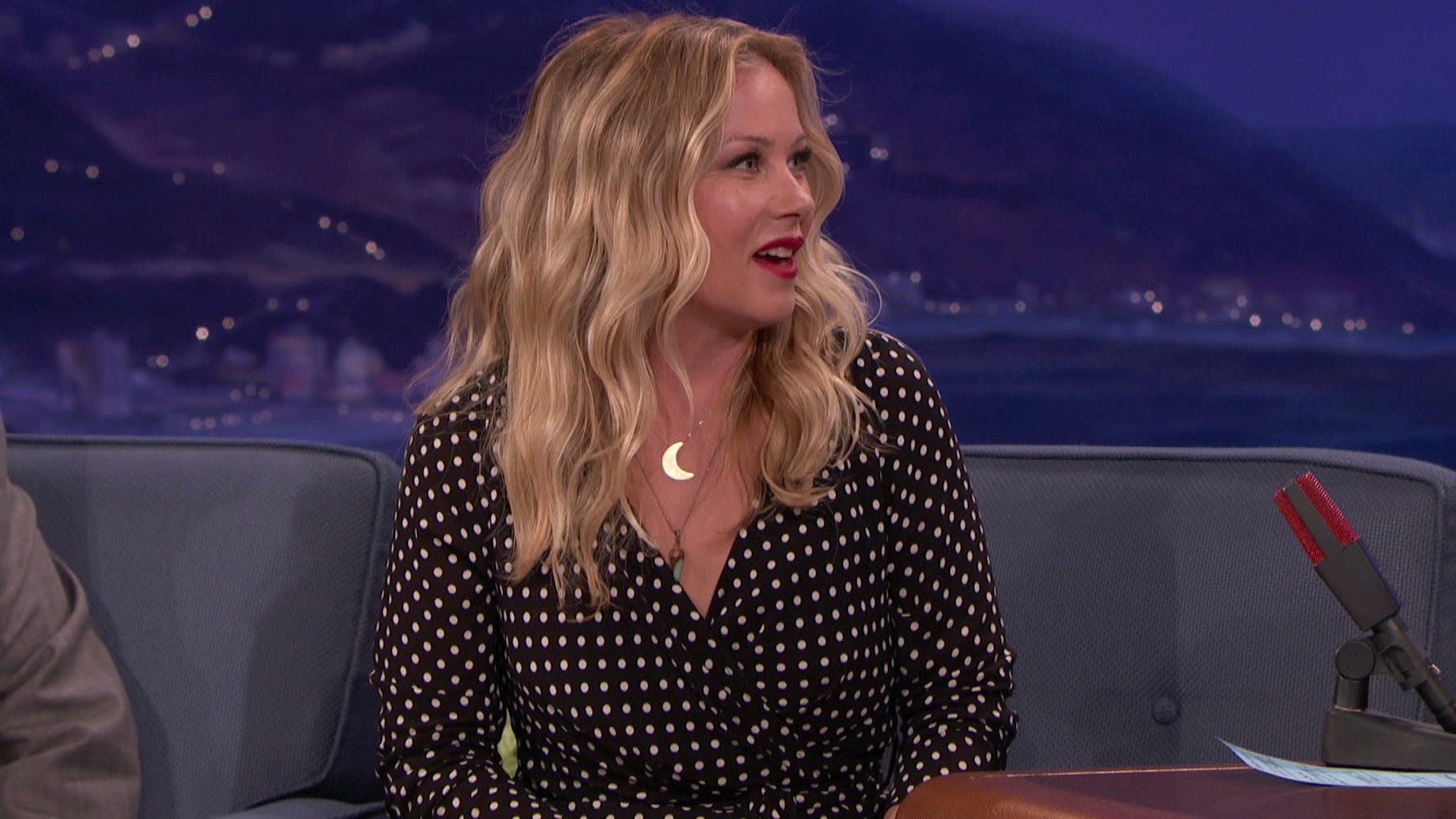 Christina Applegate Brings Birthday Gifts For ConanChristina presents the birthday boy with an old baby monitor and other crap from her garage.