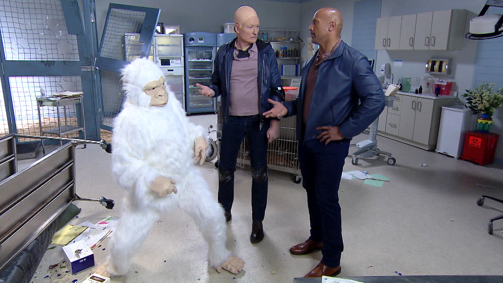 Thursday, March 15, 2018Conan slips on a bald cap and proves to Dwayne Johnson that he has the looks, physique, and acting chops to be Dwayne's “Rampage" stunt double.