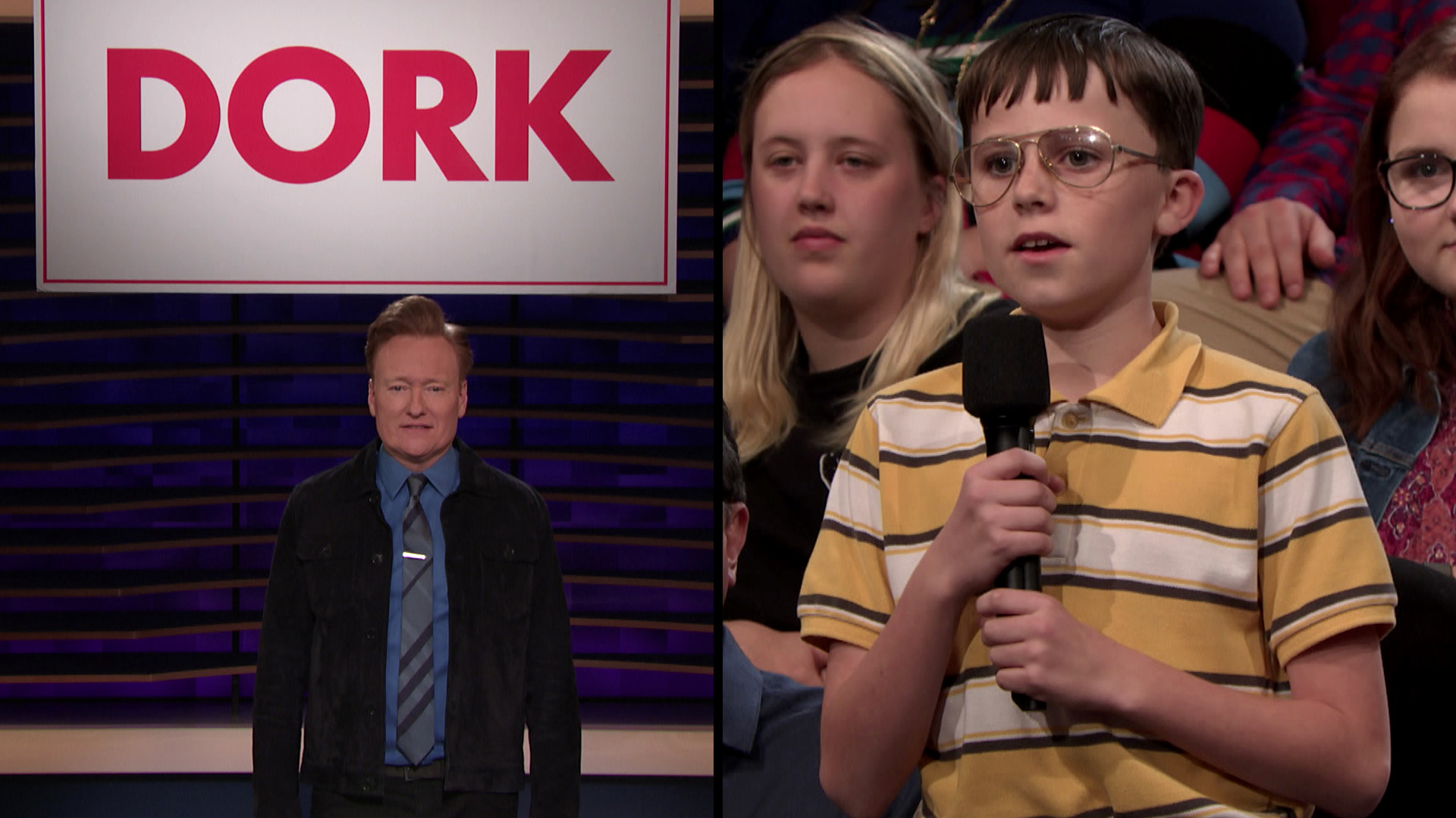 Thursday, February 27, 2020Conan helps a young man in the audience tell his friends, family, and the entire audience that he’s a huge dork too.