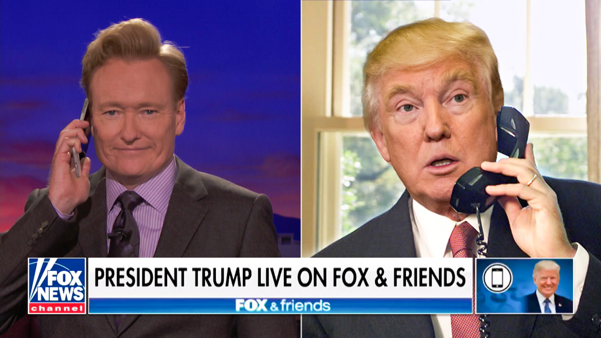 Thursday, August 23, 2018CONAN Highlight: Conan tricks the president into calling into the show by throwing up a “Fox & Friends” graphic.