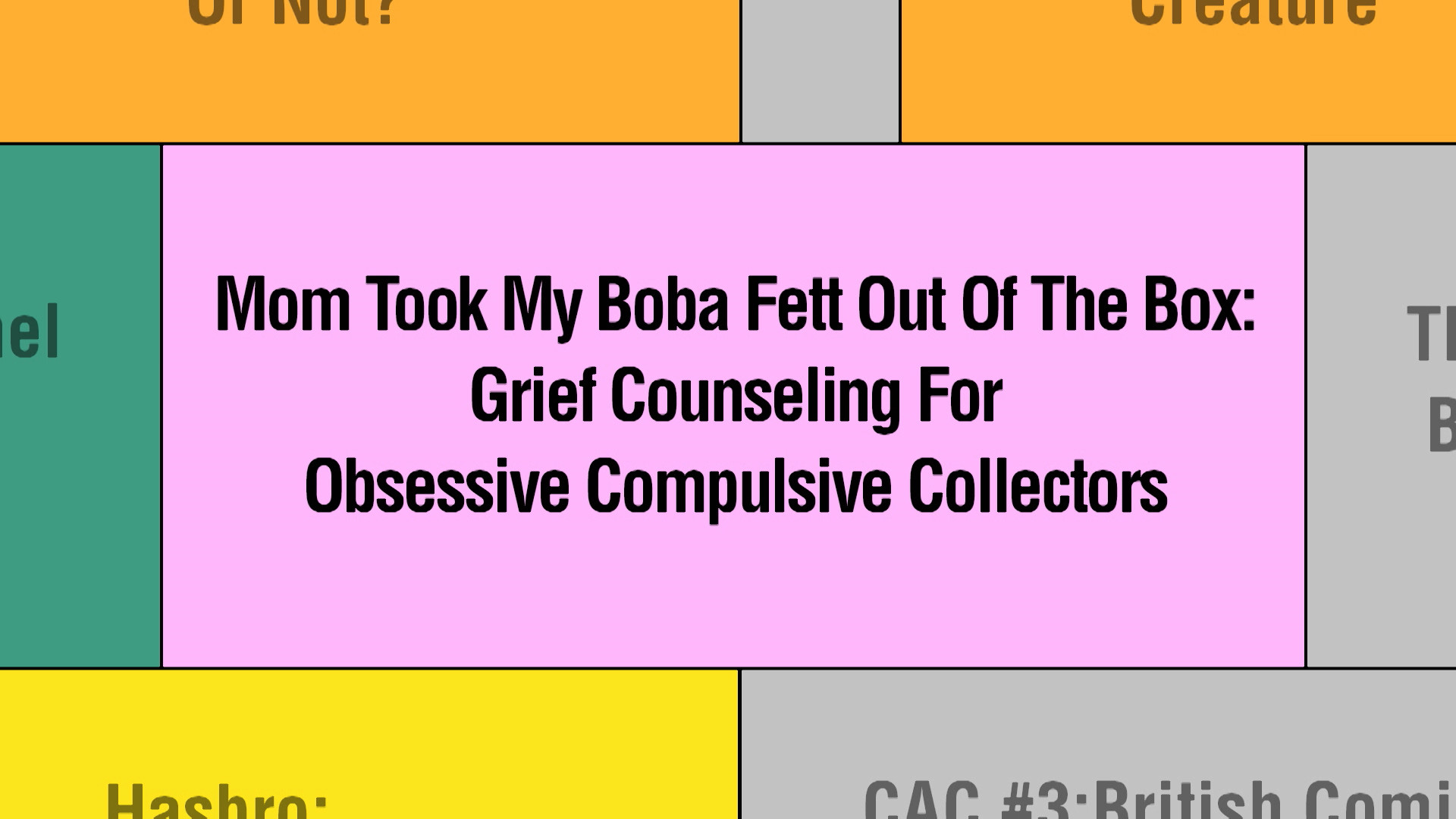 Sunday, July 21, 2019Getting into the "Mom Took Boba Fett Out Of The Box: Grief Counseling For Nerds" panel is a breeze.