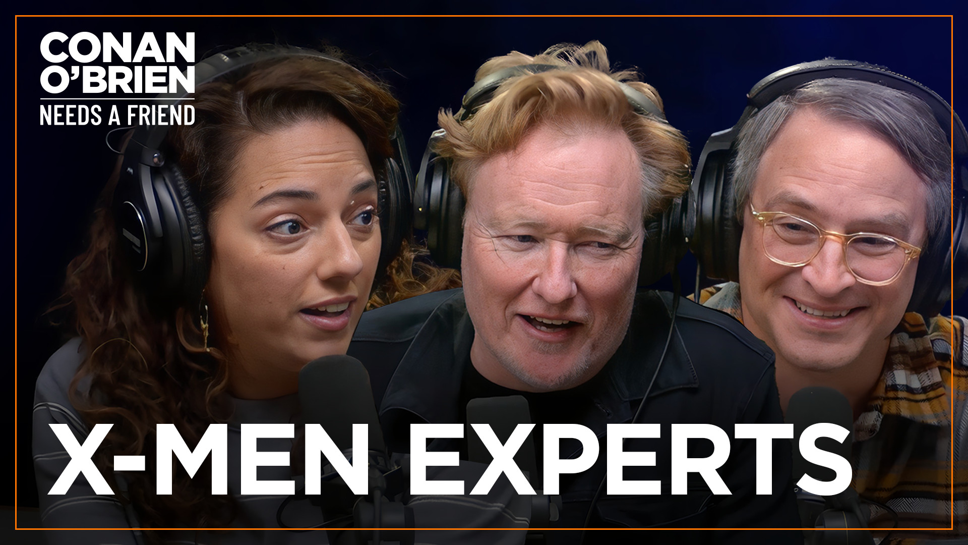 Despite knowing less about the X-Men than Sona and Gourley, Conan pitches a mundane X-Men movie. Plus, Conan announces Conan O’Brien Radio’s move to channel 104.