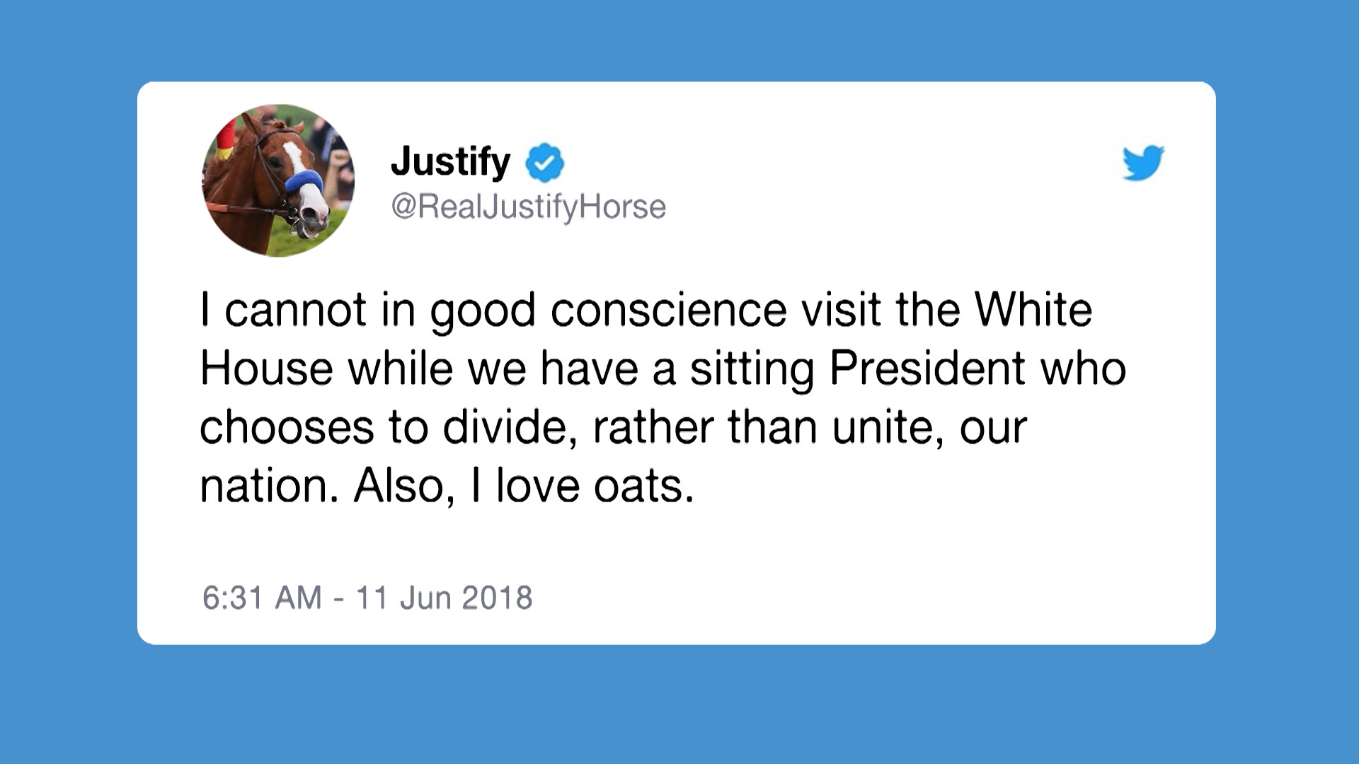 This weekend’s Triple Crown Winner caused a lot of commotion on Horse Twitter when he became the latest professional athlete to say neigh to a White House visit.