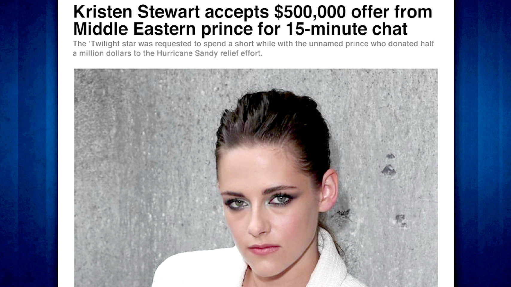 Friday, September 13, 2013A Middle Eastern prince gave Kristen $500K to just talk. She should consider herself lucky...