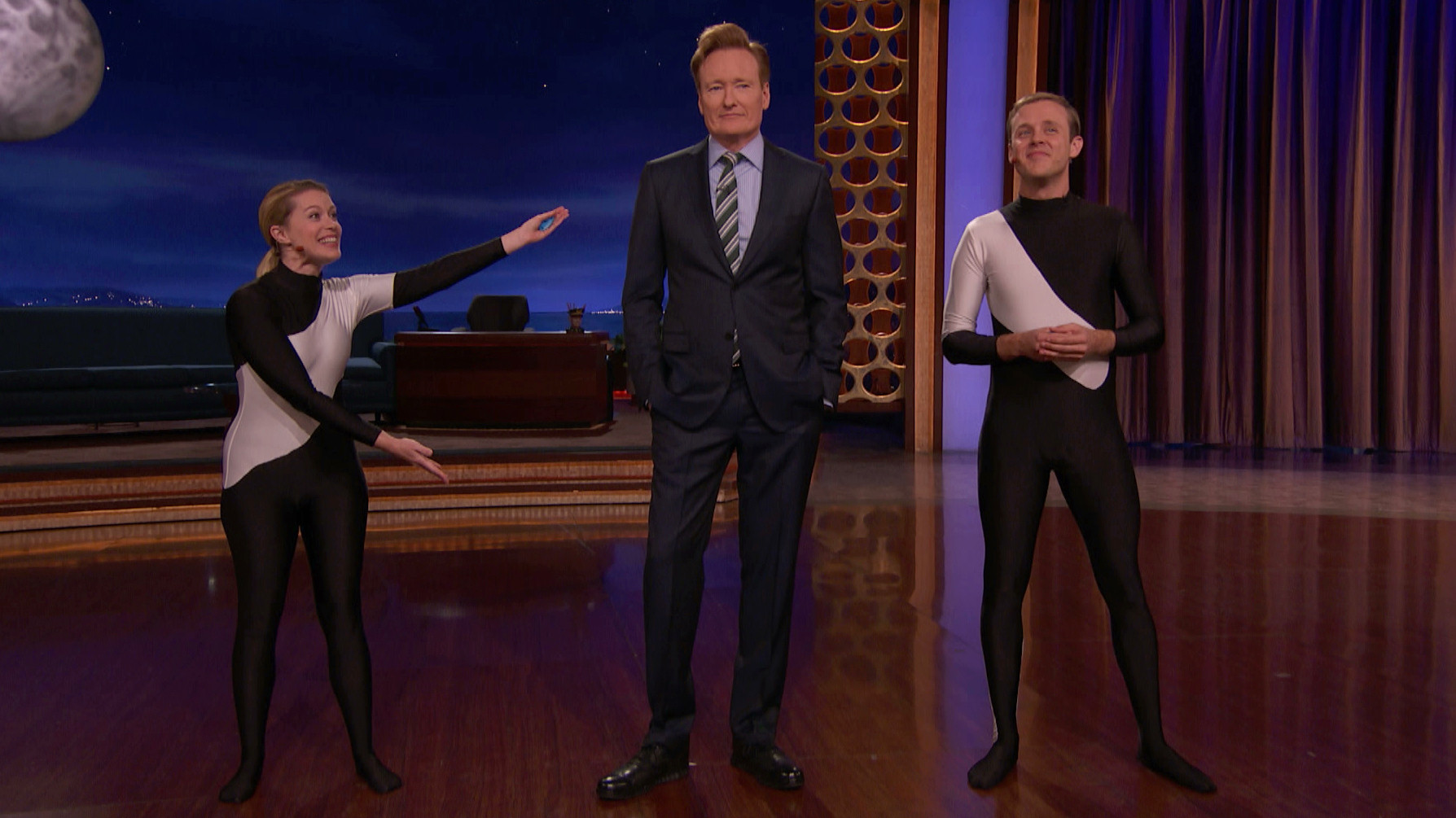 Conan Poaches His Executive Producer’s AssistantConan wants his producer Adam’s executive assistant to focus on teaching him how to become more physically flexible.