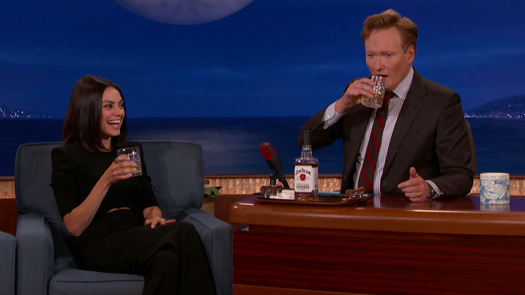 Mila Kunis & Conan Chew On Bourbon