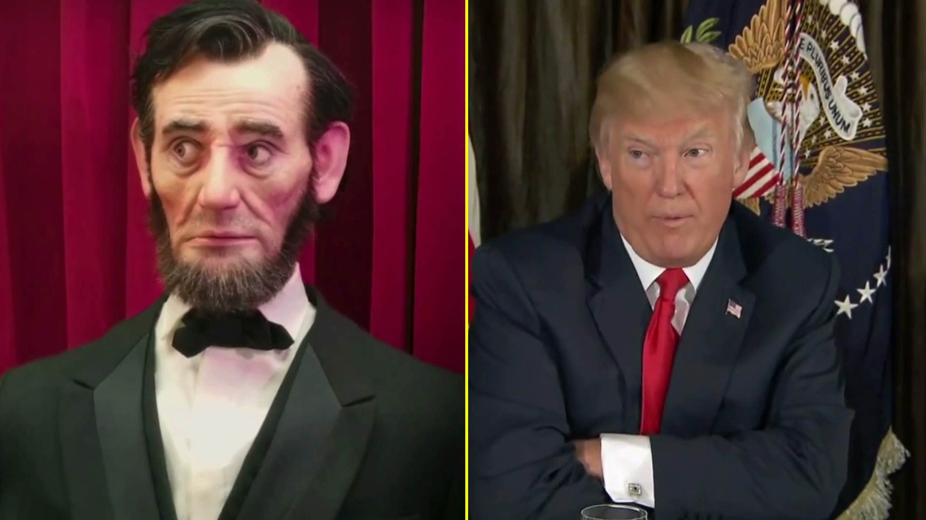 The Lincoln Robot Reacts To TrumpThe only thing more alarming than the animatronic Lincoln are the words that come out of President Trump’s mouth on a daily basis.