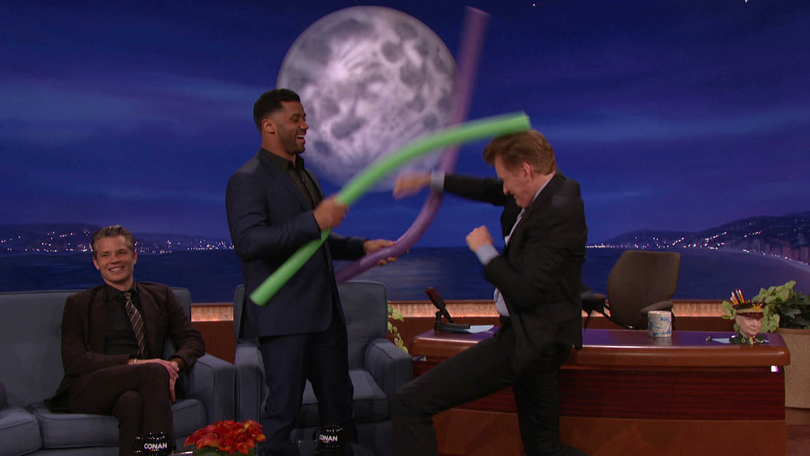 Russell Wilson Teaches Conan How To Box With Foam Noodles