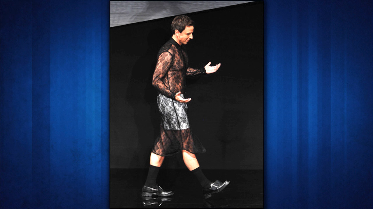 Seth Meyers On Wearing Marc Jacobs See-Thru Ball Dress