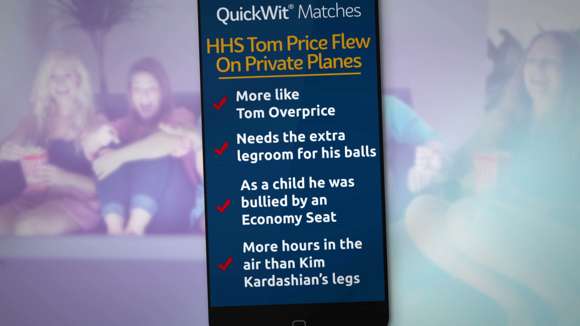 Thursday, October 5, 2017When Andy can’t think of anything funny to say about Tom Price, he turns to the QuickWit App.
