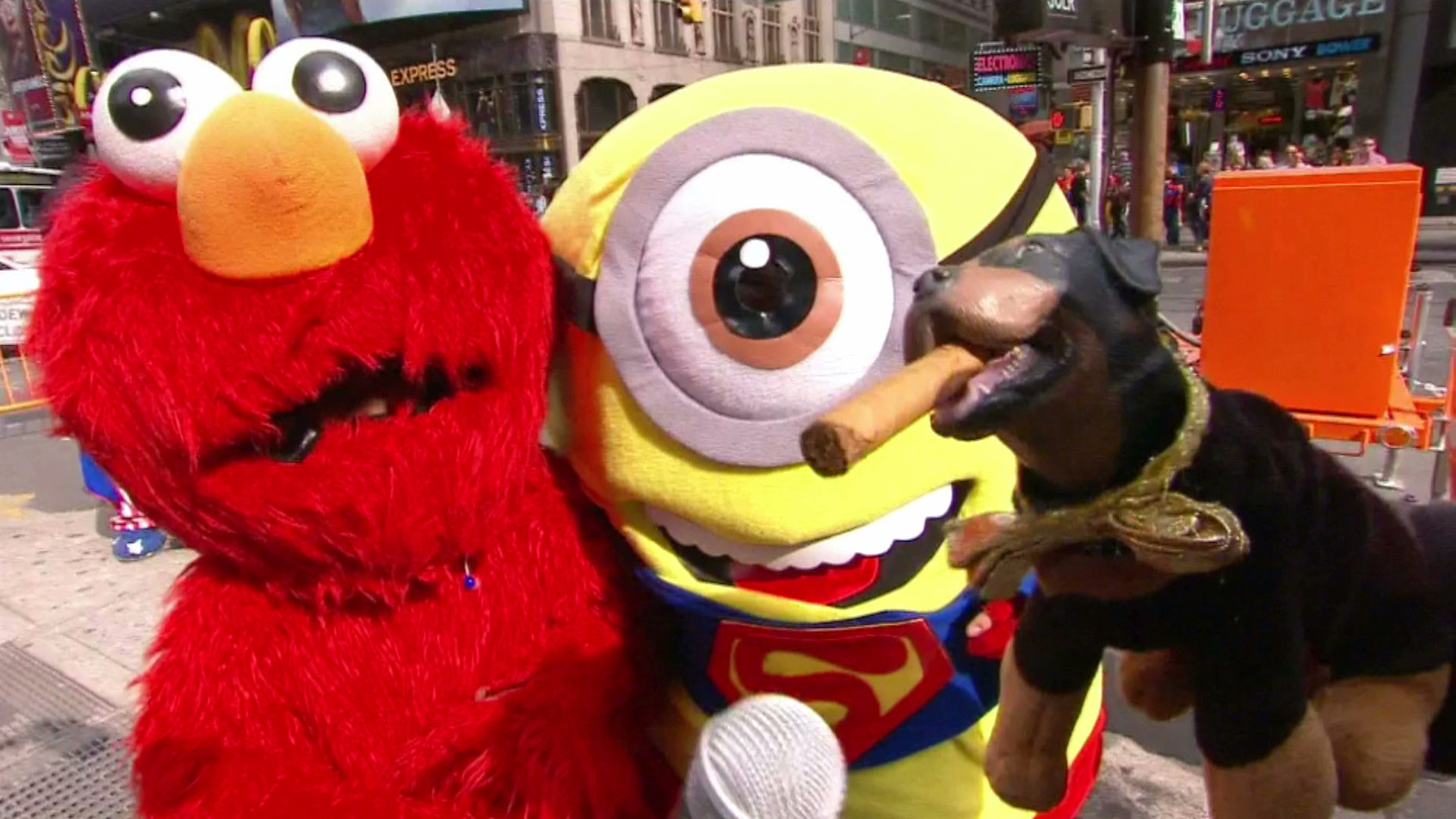 Friday, October 3, 2014America's favorite insult comic dog visits New York City's pushiest furries -- including Elmo, Mickey Mouse and Spider-Man.