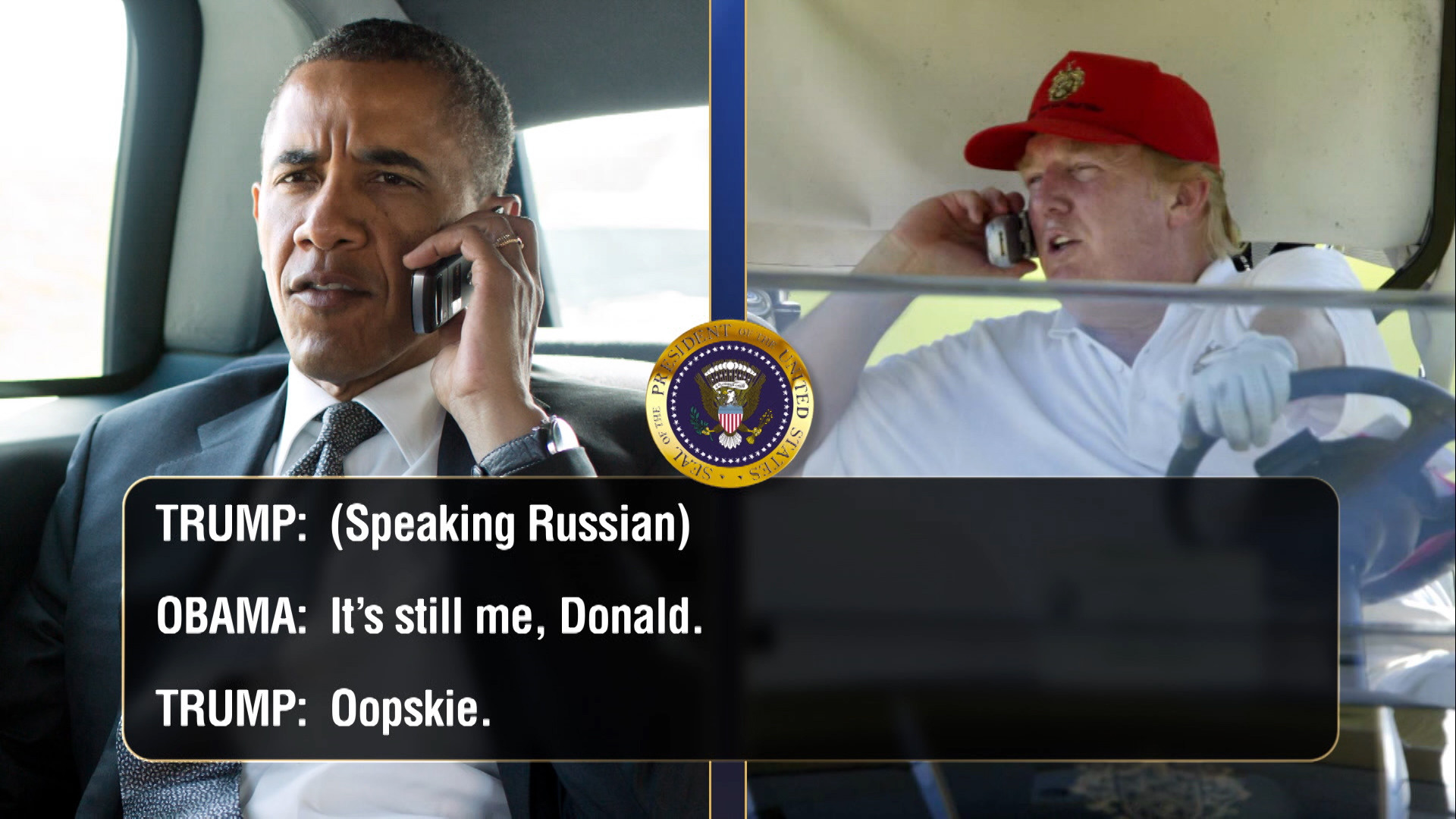 Tuesday, January 17, 2017Listen in as the 45th President calls up the 44th President to discuss world affairs and his thoughts on "The Human Centipede."