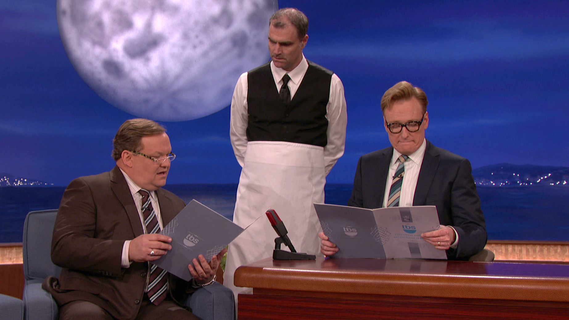 Tuesday, September 29, 2015Craig, the TBS-provided waiter, steadfastly refuses to use a pen for his order and it's driving Conan insane.