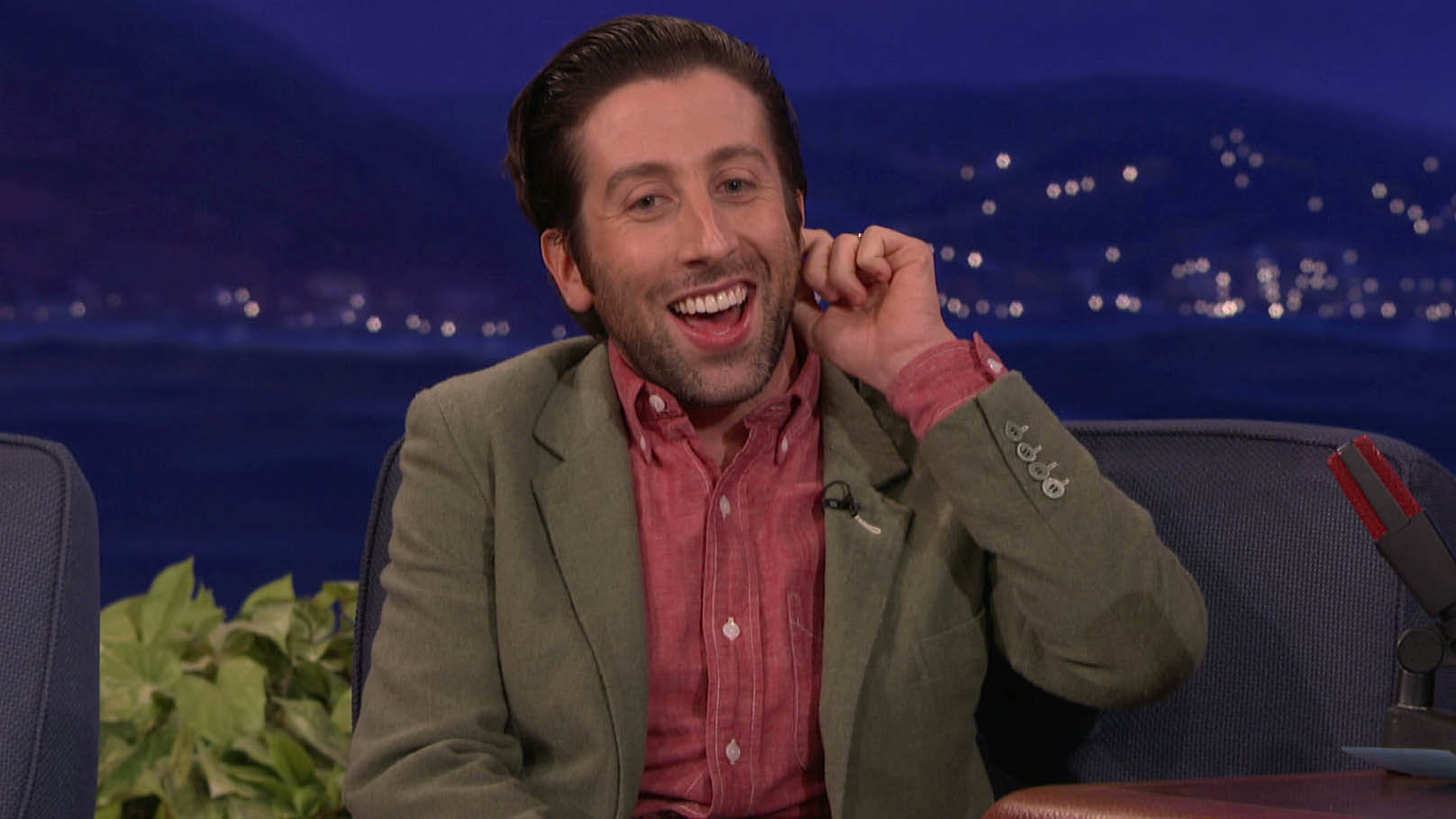 Simon Helberg & Conan Do The High Pants WalkSimon is wearing a wonderfully tactile suit that appears to be buckled at his nipples.